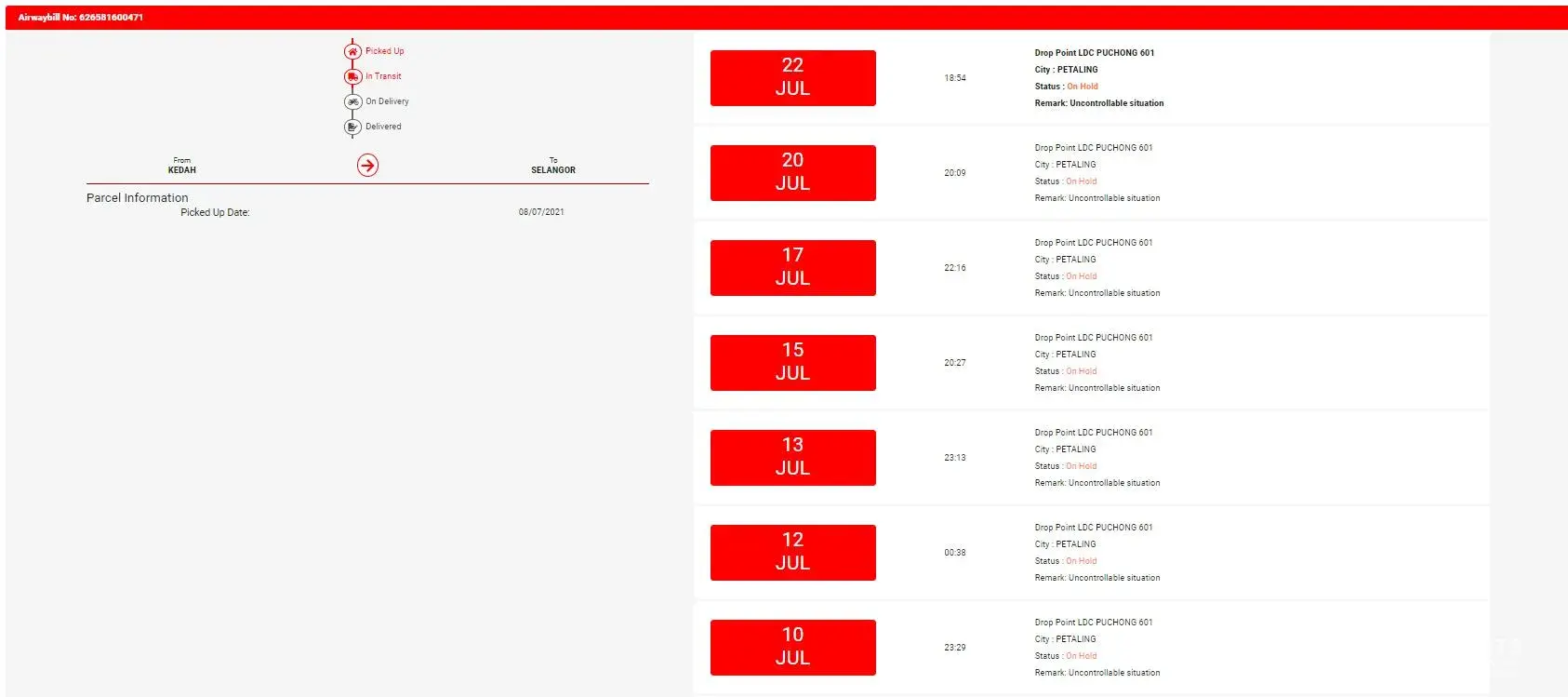 Stuck in J&T cdc PUCHONG 301