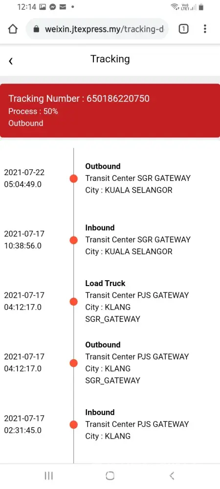 Now when i check the tracker, my item is back at Kuala Selangor..