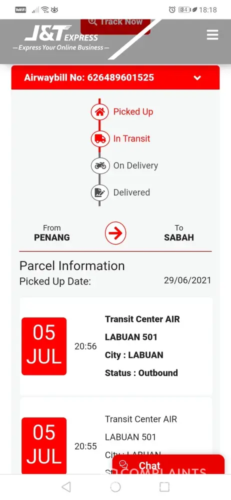 Saya pun sama, hantar 29 Jun, sampai sekarang masih di Air Labuan 501. Called J&T hotline, suruh saya call balik satu minggu. Call lagi J&T hotline, sama respon suruh saya call balik satu lagi minggu. Dah 3 minggu call berturut-turut, respon pun sama