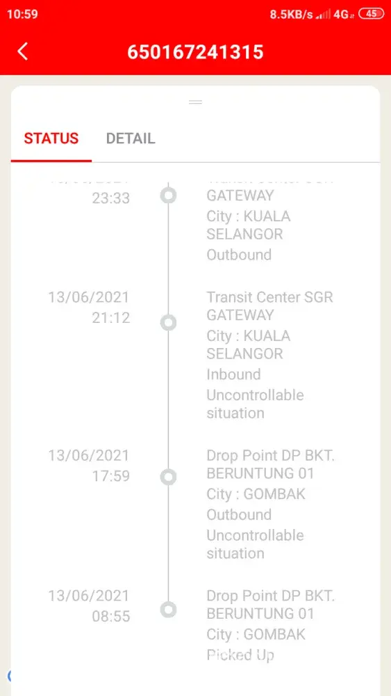 Idk what's the reason to on hold, it shows there uncontrollable situation. There's is no raining, no any other bad weather or what, what is the uncontrollable situation? The staff and workers are lazy? Cuz I read through the google review about the j&t express at seri kembangan, all the reviews are bad and talking about how the staff's laziness and irresponsible. THE SERVICE IS SO BAD! Even my grandmother can move faster than the delivery services! It's not good to use j&t anymore. It's good when it just started but now when it's getting longer, it become worse.