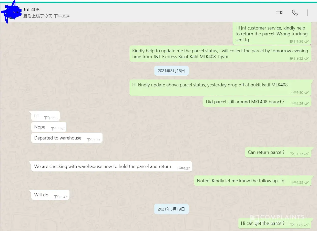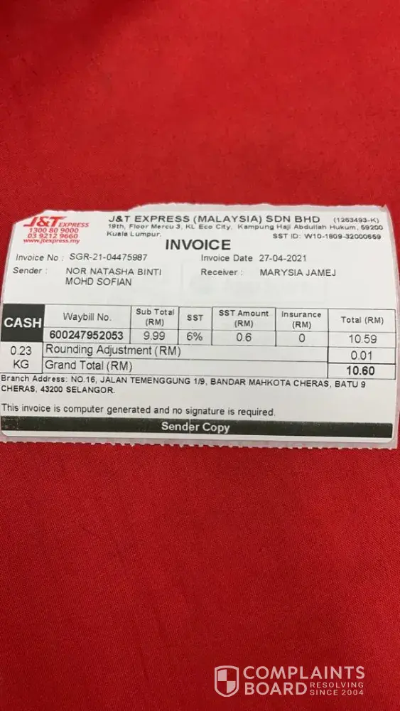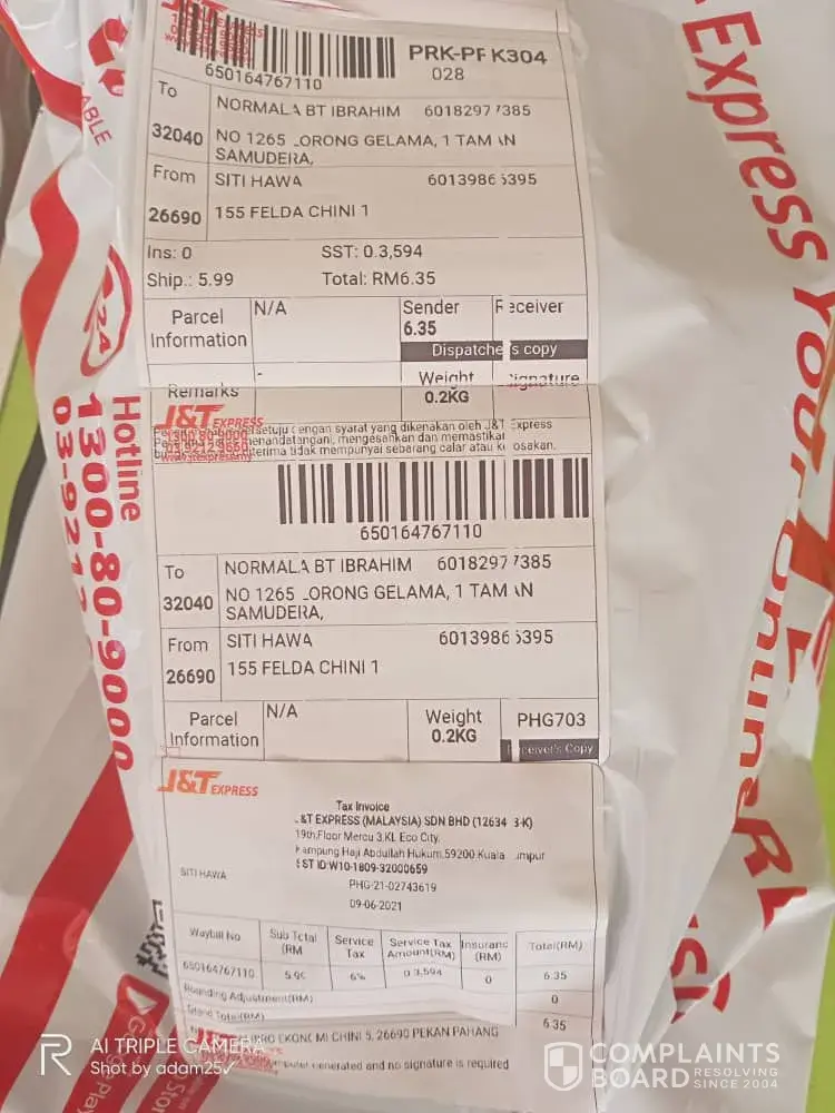 Furthermore, I wasn't sure is the seller has file a complaint to J&T already or not, below is my details: