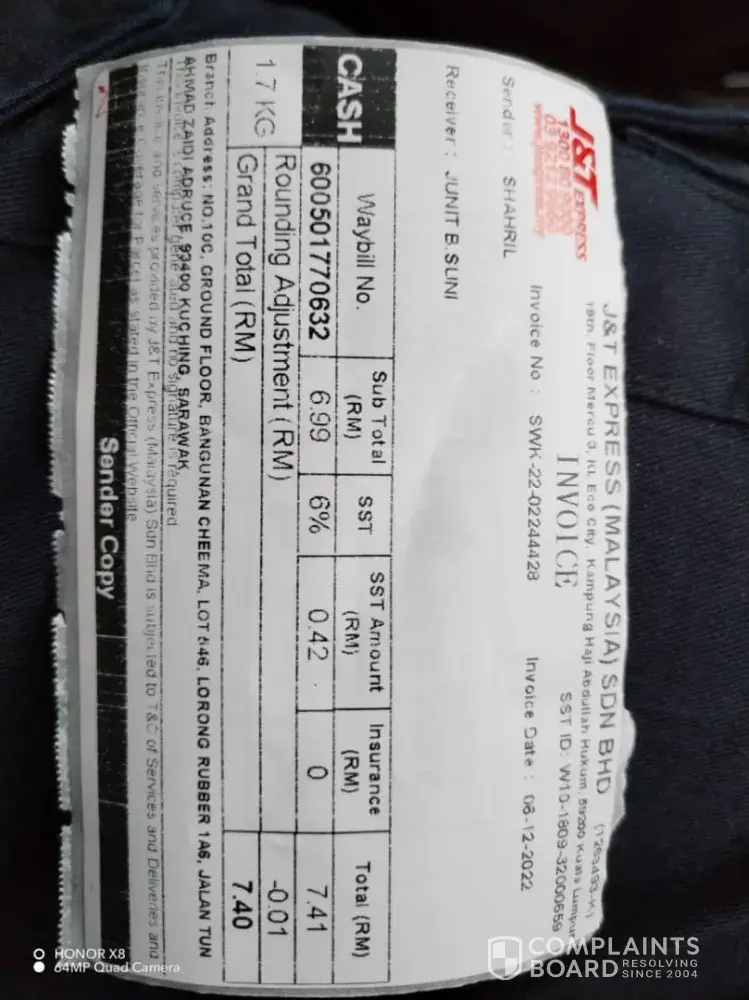 I have send the parcel and paid for the next day delivery on 02/12/2022 but the parcel still on hold by J&T Bayan Lepas 301. The receiver should received the parcel on the next day which is Saturday 03/12/2022. I had called J&T service centre and they said they will deliver my parcel today 04/12/2022. But the system still show status that parcel on hold and its not moving. Please do your job properly.
