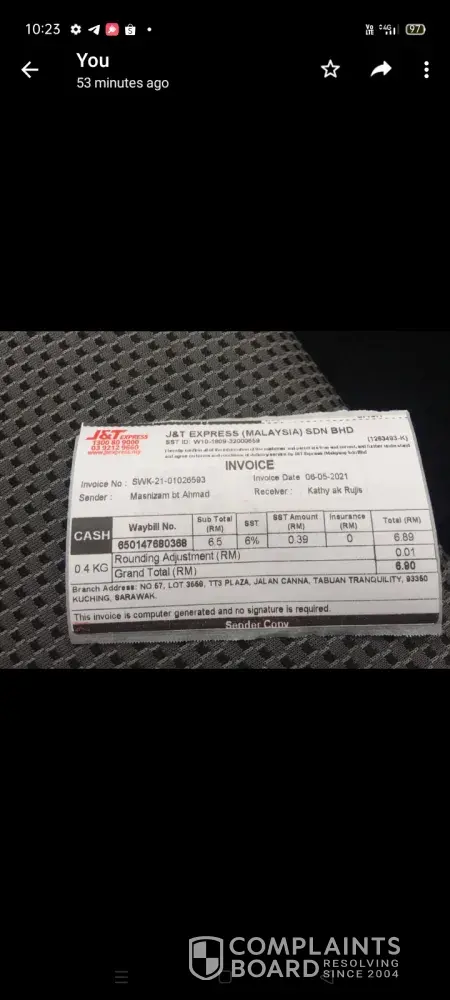 Berharap Pihak J&T dapat memberi penjelasan terhadap kelewatan dan pampasan kerosakan barang.