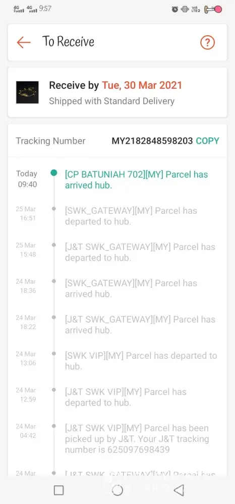 saya ingin membuat aduan tentang barang saya yg msih di jnt gateway klang.msih belum ada updated tracking.saya berharap pihak jnt dpt mempercepatkan penghantaran barang saya.