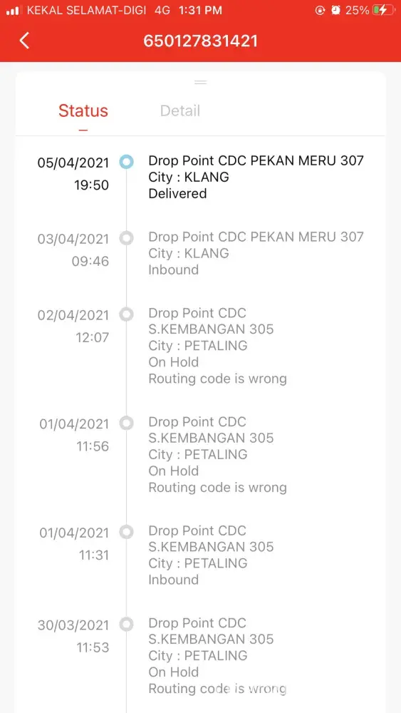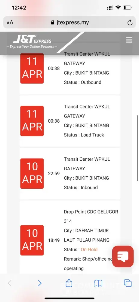 My parcel still on hold since 27/3 at J&T JHR GATEWAY- hub JHR322.