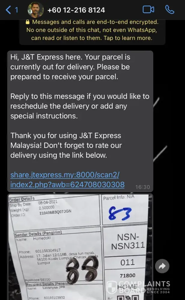 Desired outcome: I hope this matter can be resolved. Warn all J&T employees to deliver the goods to the receiver's doorstep