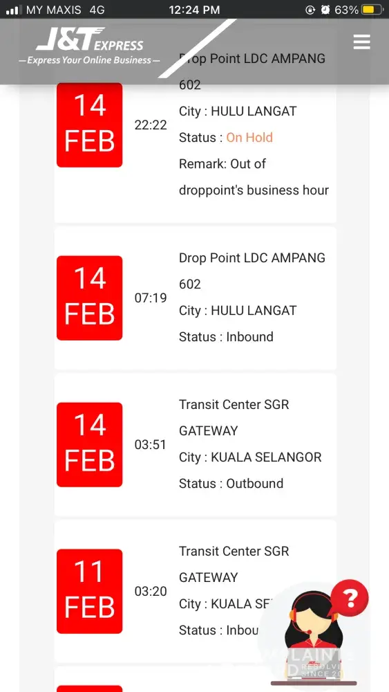 Parcel stuck at j&t perak gateway since 6feb.. Too late
