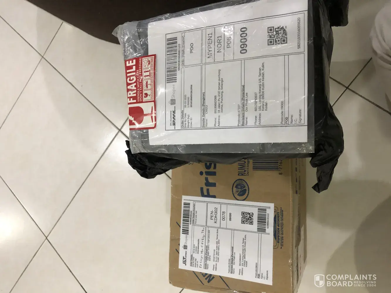 I woke up on 29 Oct 2020 morning to find a package thrown on my driveway. The package contained two items ordered via shopee. What shocked me was that the items were enclosed in a plain grey sealed envelope that did not have a label with the necessary details ie Name of recipient, sender, transaction number etc. Upon checking delivery details on shopee purchases, the package was apparently delivered at 11.24pm on 28/10 (?). I am apt to think that the original package was tampered with. I hope J&T can shed some light on this matter.