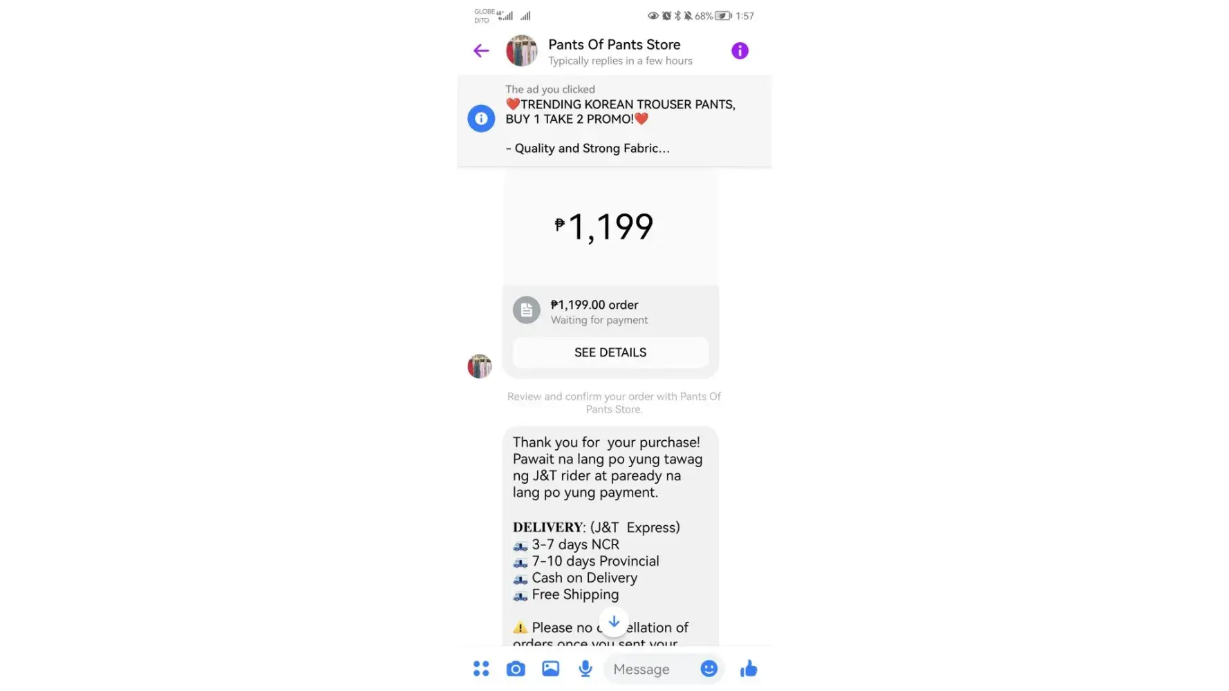 I paid 1200 for 4 trouesers and they sent me 60 pesos jogging pants