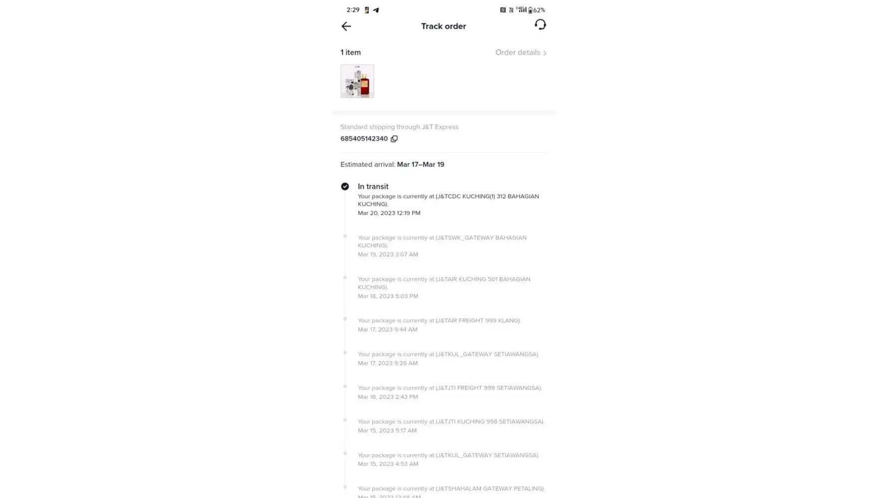 Afternoon , my order should be received by 17/3-19/3 but until today i still didnt receive my order . And but parcel still stuck at jnt cdc bahagian kch 312 bahagian kch . And sudah 2 hari tiada update dari jnt cdc kch 312 . Last update 20/3. I want my parcel as soon as possible .