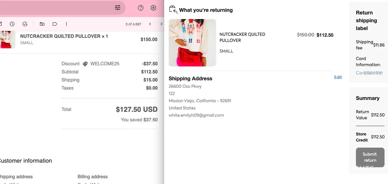 I placed an order with this company and received a piece of jewelry that was work and broke right away. Company refuses to give a refund/replacement I placed an order for a necklace and bracelet almost totaling $100 for costume jewelry. The day I received it. I messaged the company via text because that is how they communicate, stating that my bracelet was all worn out and broke with in seconds of handling it. They refused to give me a refund and ignored the fact of a replacement. They also have a 20 day window to return. My order was placed on December 11th and I received it in December 28th and they are telling me I am out of the return window!? That is absolutely unacceptable that I can't return some thing because it traveled for 2 1/2 weeks. I want my money back from this company, also the customer service is absolutely terrible and the woman who was texting with me was very snarky. This is a horrible company to work with This is very upsetting. They are also marking up the retail value of this item from the original company who sells for $22 and Judith sold to me for $42. Want a REFUND FOR MY WHOLE ORDER