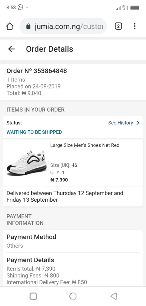 Also, I have received Jumia Pay confirmation that my payment was successfully completed and when I have tracked my order with the following massage. My order will be delivered on Tuesday or Wednesday.