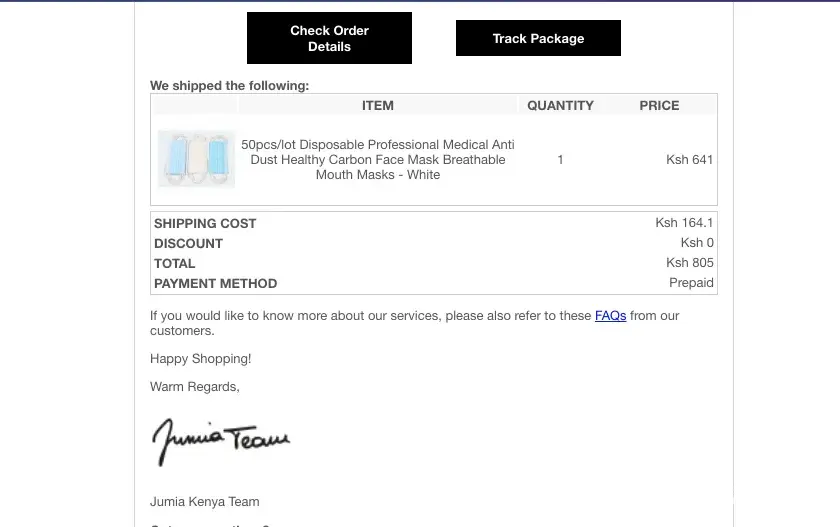 RE: Jumia Order [protected] has been confirmed & shipped.