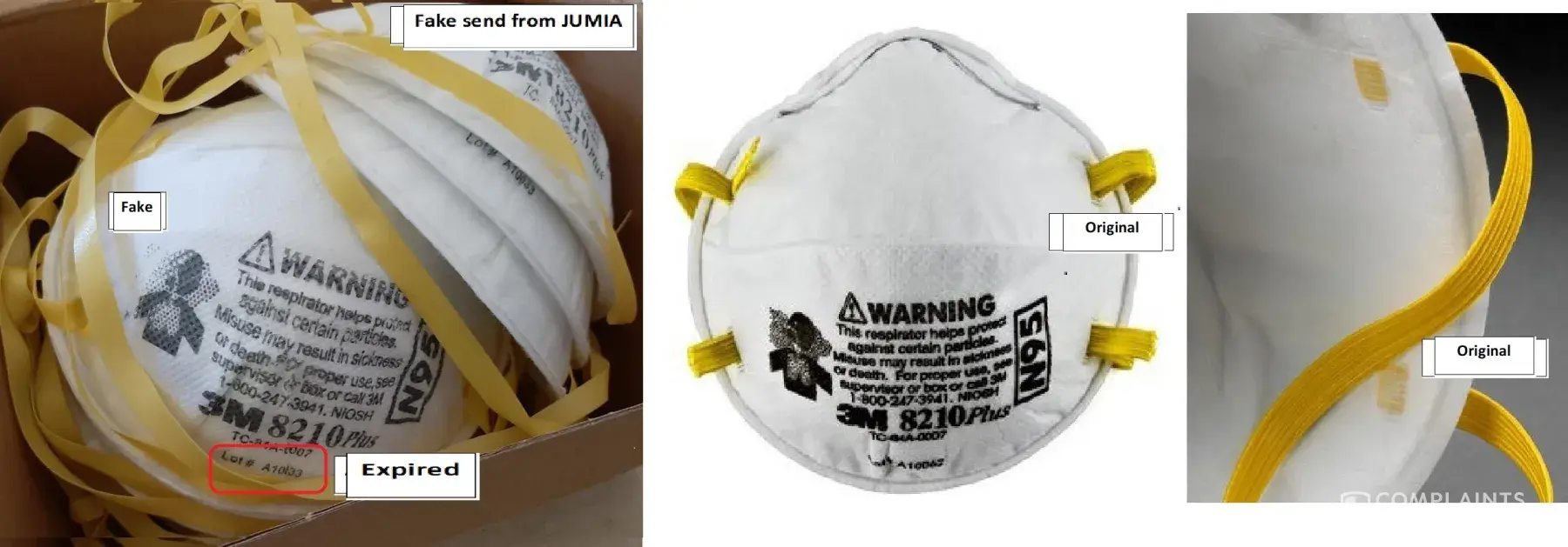 So I check 3M website and noticed that the 3M 8210 Plus strap is made of dark yellow tissues, while the masks send to me have a strap made of yellow plastic.