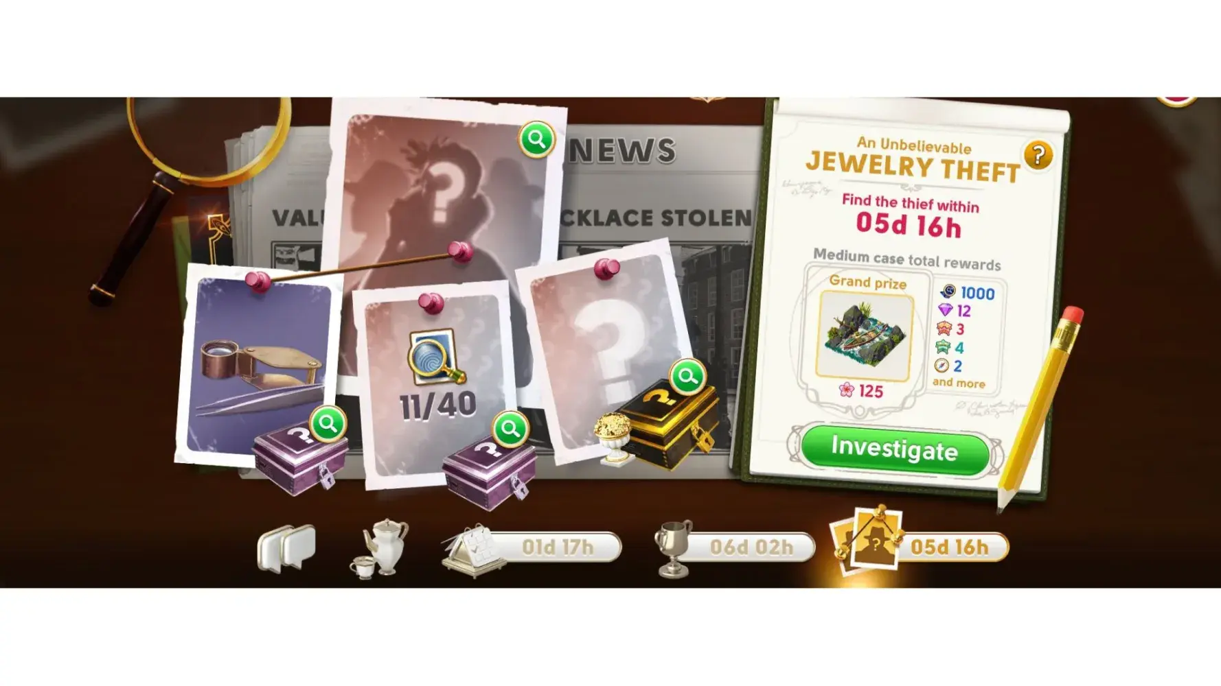 Then things started to change, but not for the better. They have two ways you can move forward in the game besides building the buildings and improving the landmarks. You can gain prizes through completing the Detectives Needed (usually lasting from about 1 to 3 days) and you also have the opportunity to participate in competitions.
