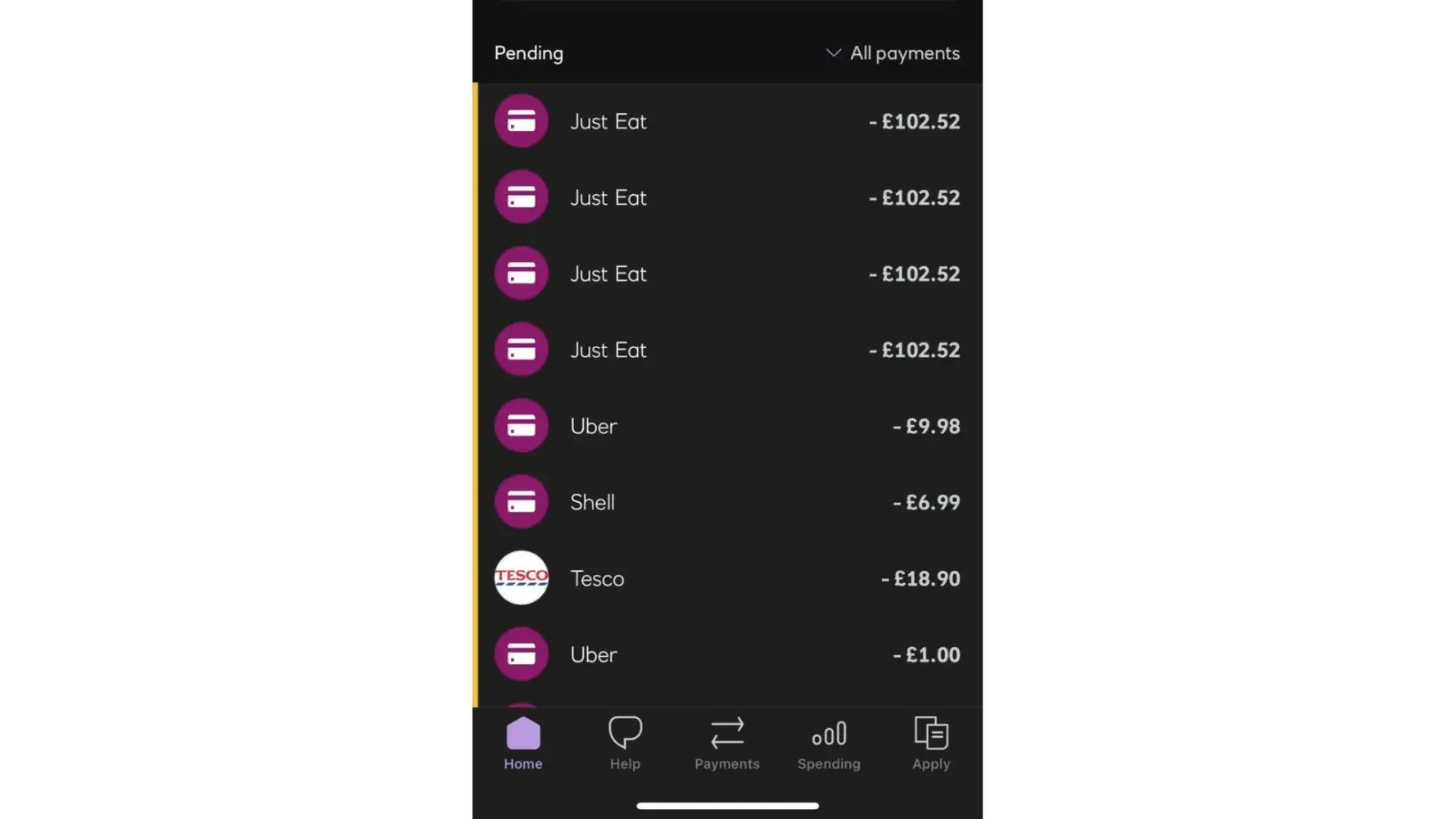 4 transactions of £102.50 were taken from 4 new mobile phones all within 1 minute at 1am - a total of £410 from my account leaving me with NO money at all to survive and a lot of administration.
