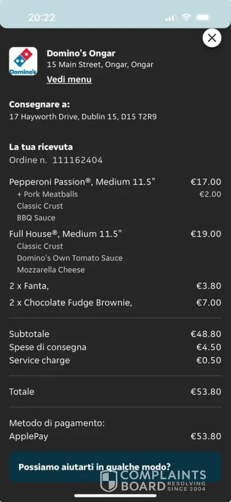 I hope this letter finds you well. I am writing to express my serious concerns regarding an incident that occurred during a recent delivery from one of your partner restaurants, Domino's Pizza in Ongar Blanchardstown. The delivery driver involved in this incident is named Rezaul Karin.