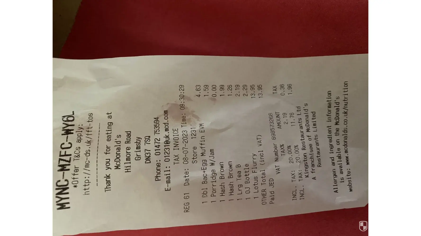 Mcdonald's breakfast (08/07/2023), Hillmore road, Grimsby, DN37 7SQ