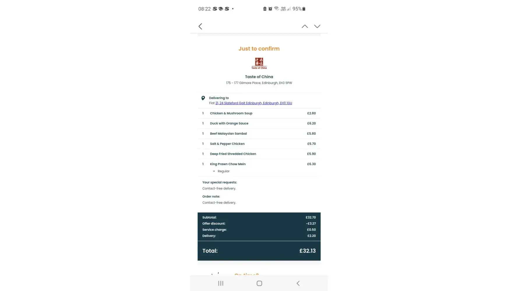 I did big order and had more than half of it missing, don't know if restaurant didn't put or driver took, i emailed them asking for refund because i soend around £40 and thays a lot , but all they send me was £7.99. When was supposed be more than £20.