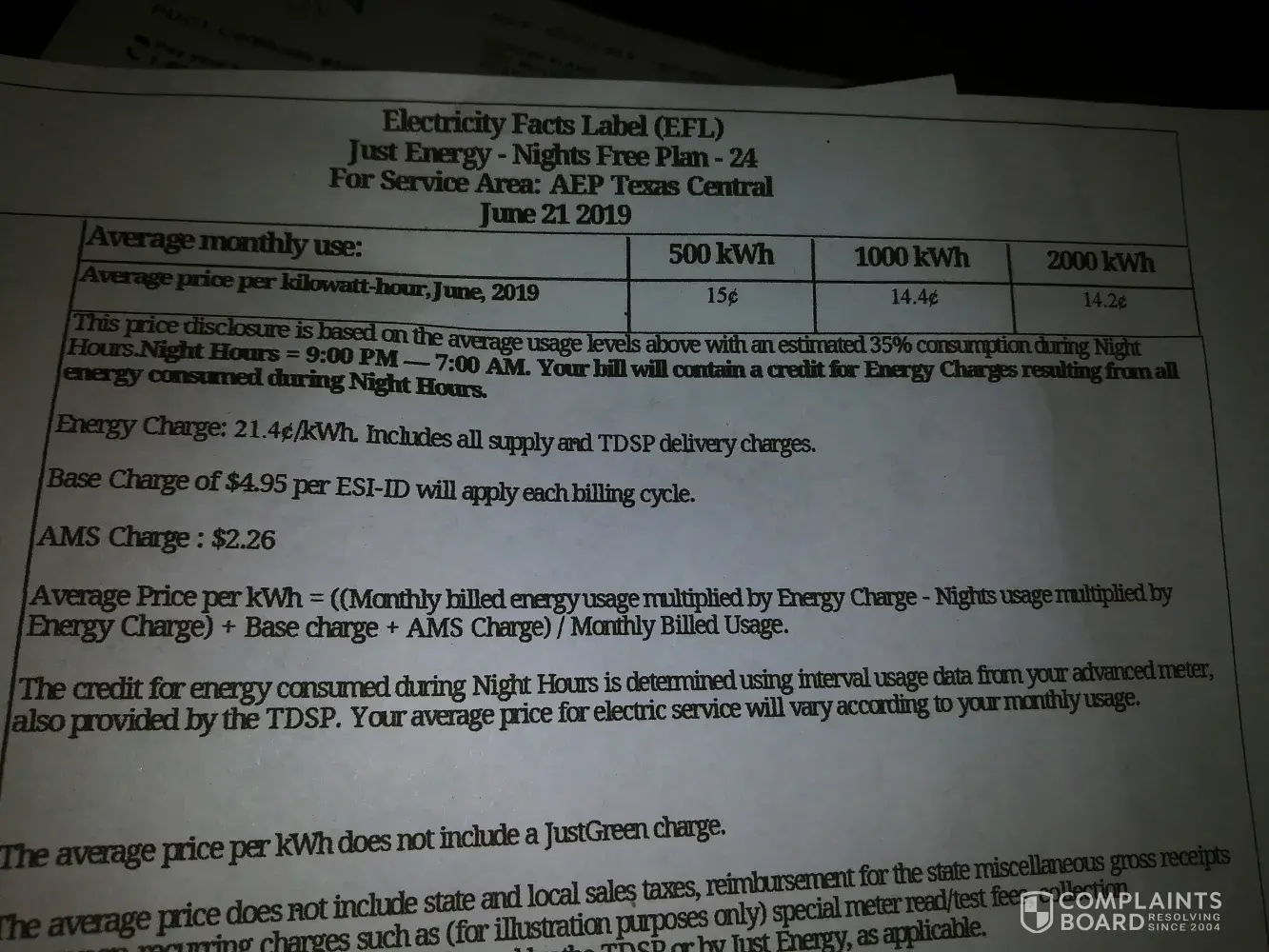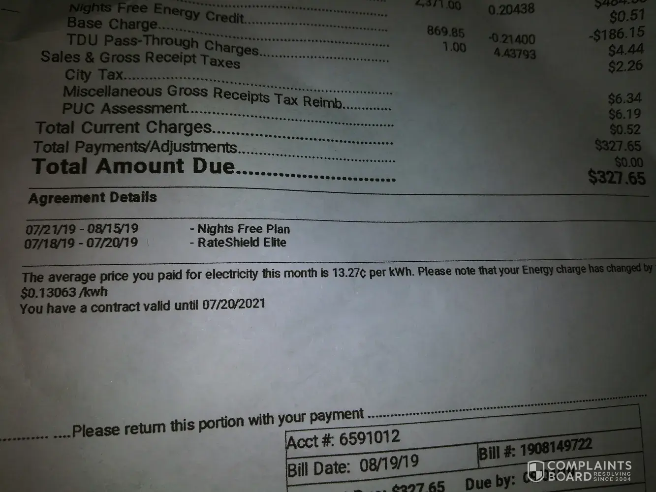 I changed from the rate shield elite plan to a nights free plan. The EFL states the 2000 kwh will be @ 14.2cents, it's being charged at 20.4cents. With a note at the bottom: "Please note that your Energy charge has changed by .013063/kwh." On my bill it's a $147.00 difference. No notice, no reason just a small note on my bill.