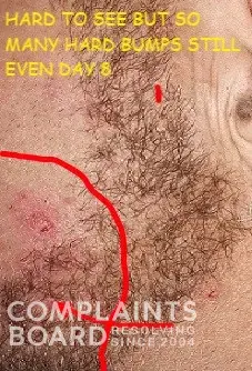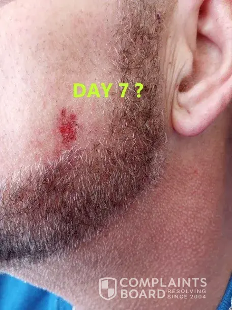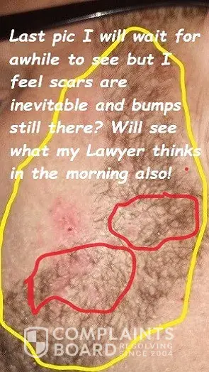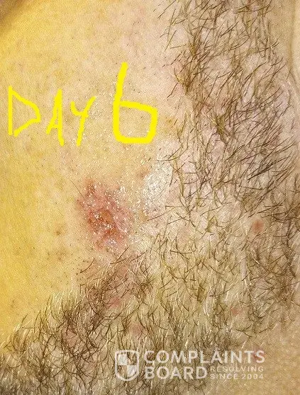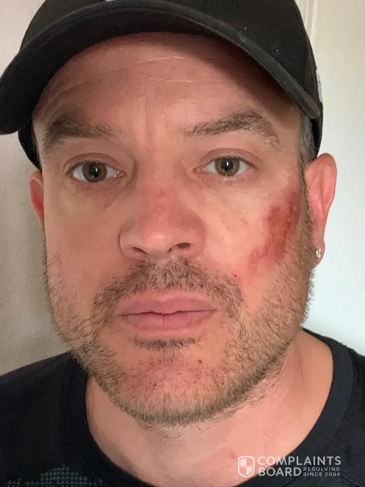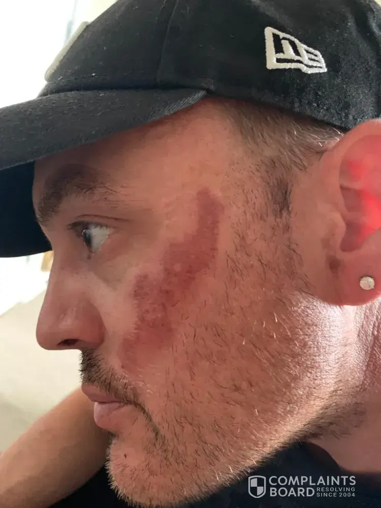 Desired outcome: I'm well past a refund , after research n references to which lawyers locally would suit my situation, I have narrowed it down to the two best , I lost 4 days of work due to the terrible looking "sore" on my face. That is still there.