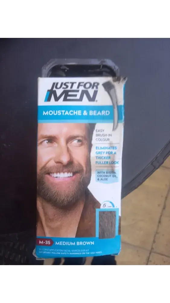 I have used just for men products before without issue. Last week I purchased just for men, beard and moustache. I did a test 48 hours before application. I then applied a small amount mixed as described on the instructions and left it in for three minutes rather than five as I did not want a dark colour. About 3 hours after washing it all out twice I started to blister all over my lower face. The day after this I had burns all over my lower face and extreme pain and itching. The burns were causing extreme discomfort and I contact my local doctor who advised rinseing with cold water and using burn cream. It is now a week later and the whole top surface of my skin has blistered and is starting to peel and flake off. This product is terrible and dangerous. I do not normally have any allergies. All in all a terrible experience and I still have burns and itching after 10 days!
