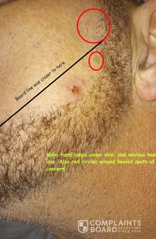 Unbelievable! Today is now March 14th, which means it's a few days from 2 full months since my "Incident" using JFM Beard and Mustache M-46, and the left side of my face continues to have hard bumps under the skin and also remains open occasionally draining infectious liquid, this is after a full cycle of antibiotics? Seemingly unable to heal, It almost looks the same at my day 6 picture in previous review?