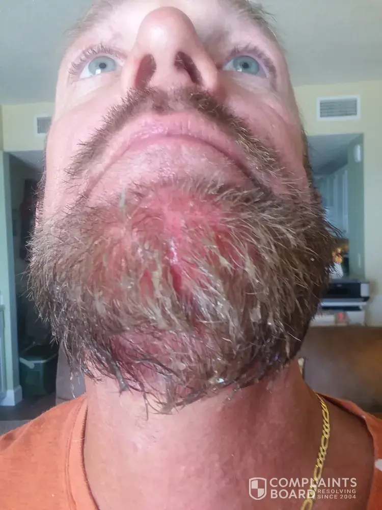 May 21, 2021 I used just for men beard & mustache product. I did my test area 1st on my beard. no reaction I put all over. woke up around 3 am with lots of pain, blisters on my face, neck and ears. They were oozing fluid from blisters. Patches of my beard hair has come out.. I have called my Doctor. Waiting on her advice.David Farley [protected]@gmail.com