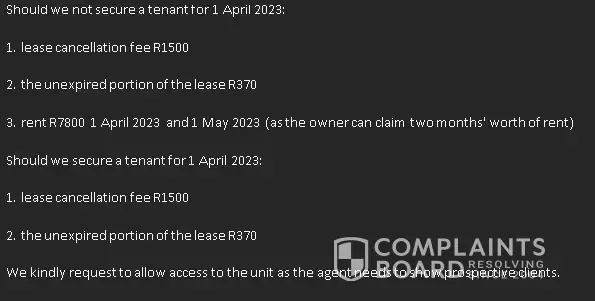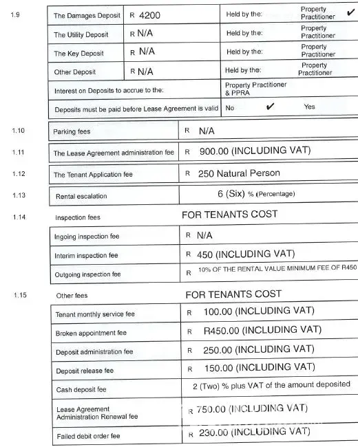* Owner and I not happy with these ' 11 hidden' charges that have popped up on the lease agreement and the almost R12000 statement I was instructed to pay this week.
