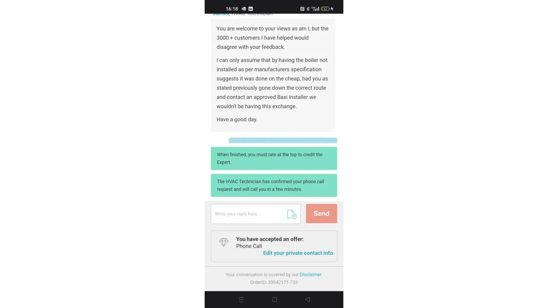 I have contacted that number and they indicate to email the warranty team, I would think its baxi's issue to have qualified engineers and not botch people installing boilers, I will take this legal if needs be