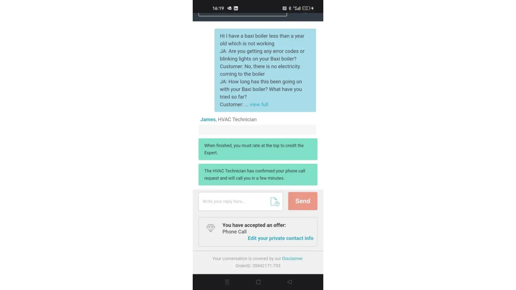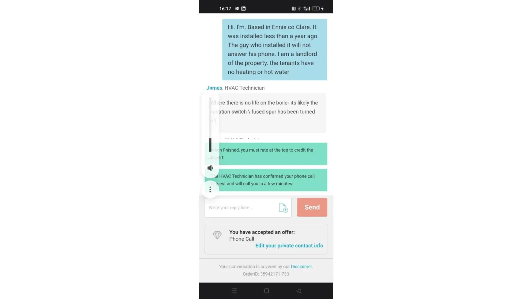 What he recommended did not work. Was I just charged €18 for this?. The boiler is in warranty. I want an engineer out to fix it now