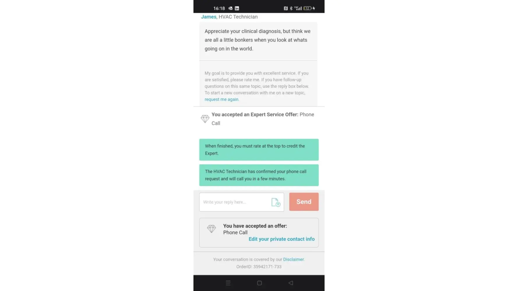 On 5th March at 14.00 I agreed to pay $2 to speak to a technician. I never heard back from them.