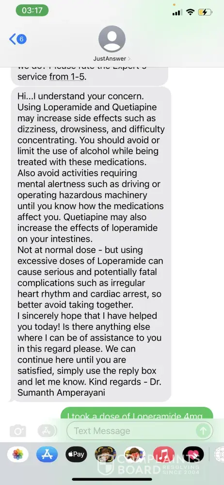 I was not satisfied with the ‘help' I received. It was a copy and paste from another website that I read earlier on. The doctor also said they would talk to me until I'm satisfied, but they stopped responding.