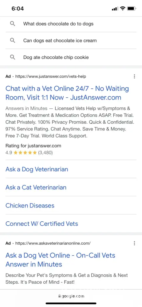 I attempted a Google search to find out what might be going on with Cleo. That's when I stumbled across the JustAnswer site. It appeared as though a professional veterinarian was available online to answer questions and provide information. I asked my question in a chat session with the vet. The vet explained I needed to pay $1 for an answer. I agreed providing my debit card information.