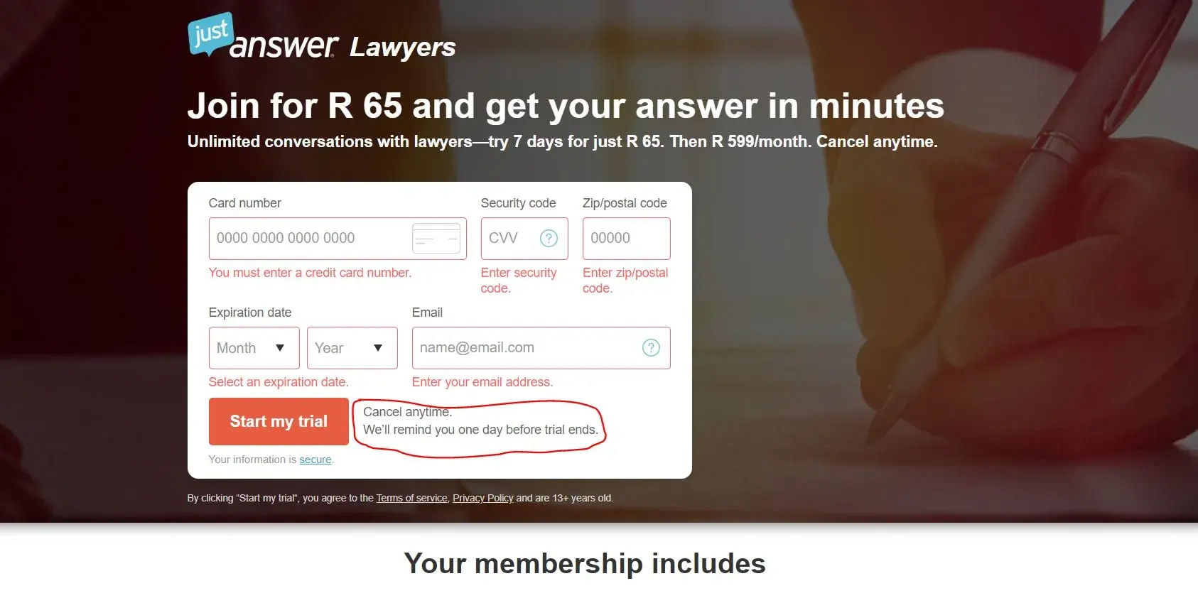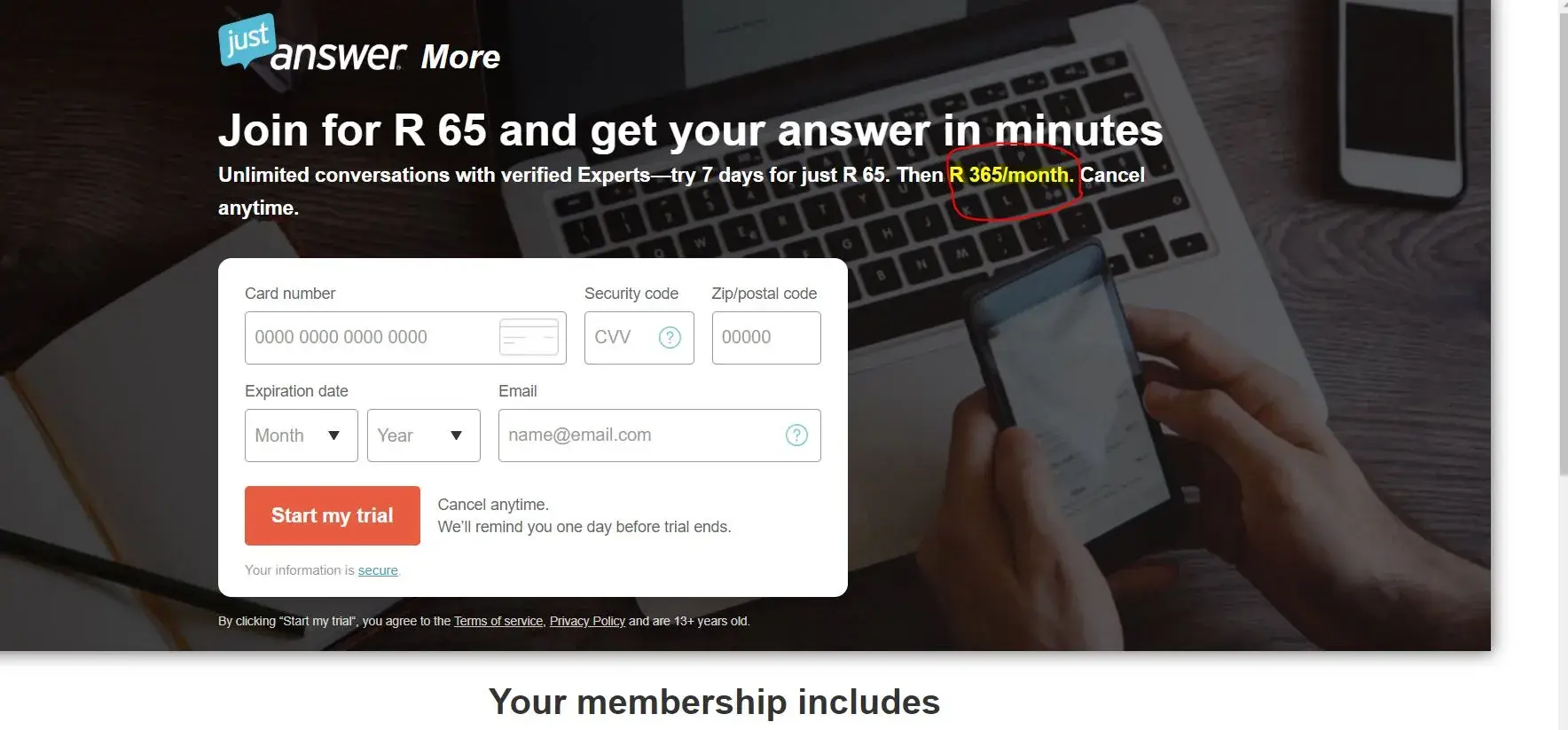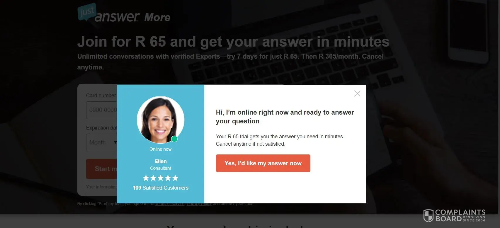 When you ask them what is going on a robot, under the guise of a professional person, with a name and photo leads you, again to the place where you have to insert your credit card details... AGAIN! I had to cancel my credit Card to stop them from taking out any more money. They lead you to believe your question will be answered for R65.00 (refundable) but first you have to put your credit details in. Then They have you! they never refund your R65.00 and then they take a monthly amount of R599.00 out every month until you cancel the subscription which is difficult to do as you have to do a history search for info and numbers relating to your first question. I asked them to refund my money but so far they have not. I am now asking my bank to do an investigation into them. Through a Credit Card Dispute form