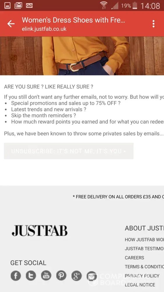 I'm very unhappy about the service at just fab. I had a problem before with an order I had placed so they gave me credit in my account as refund on my first order. I have a wedding to go to so I wanted some new sandles. So I placed an order on the 25th July (the wedding is on the 18th August so plenty of time) weeks go by and I still haven't received my shoes. Then yesterday the 15th August I get an email saying the item has been returned and I'm getting a refund. So I called JustFab and they claimed nobody was home when they tried to deliver it 3 times. I live in a pub that opens at 8am and closed at midnight. So there is always someone available to receive packages. I'm guessing they didn't try. They wanted to give me credit again but I asked them what the point was if I don't receive the item? They agreed a bank refund but I'm still stuck the day before I need to travel to the wedding without shoes. I think this is appalling. Please advice what can be done about this.