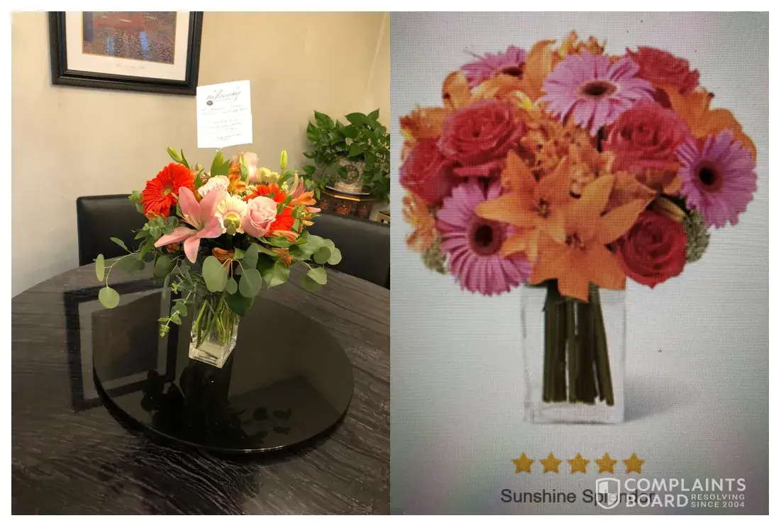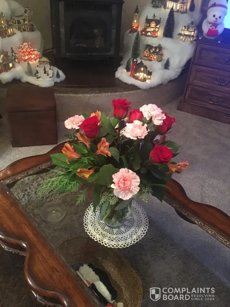 Here is a copy of the email that I send at the end of July. I'm sorry but you will sense my frustration in the email. Their resolution was a $10 credit and asked me to send another picture that would show the back on the flowers. That is not necessary when you actually see the picture that I did send, and it was too late to try and get a copy of the back.