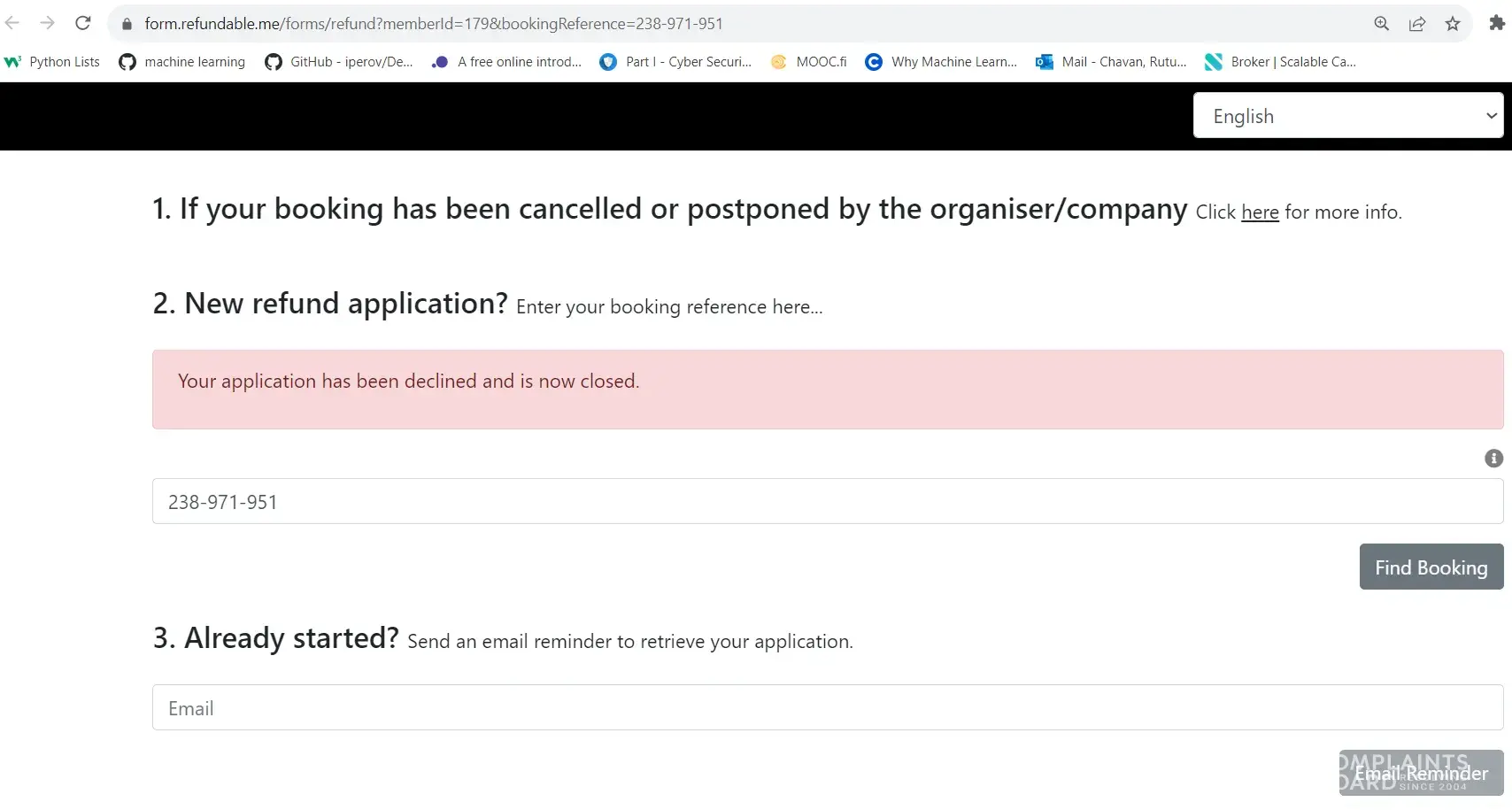 I wanted to reschedule my flight and by mistake I open cancellation policy 'Refundable.me' website, I thought I am redirected to rescheduling section. Then I submit the form ang it got declined, I was amazed that they did not asked for fare charges and etc and they declined it.