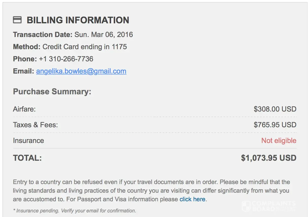 i thought it seemed like a nice sight and a good price on my flight. i even paid for insurance in case of unforeseen things happening.
