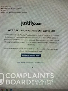 Desired outcome: I would like a statement from the company showing that I did not receive a refund. JustFly Booking Number: [protected]