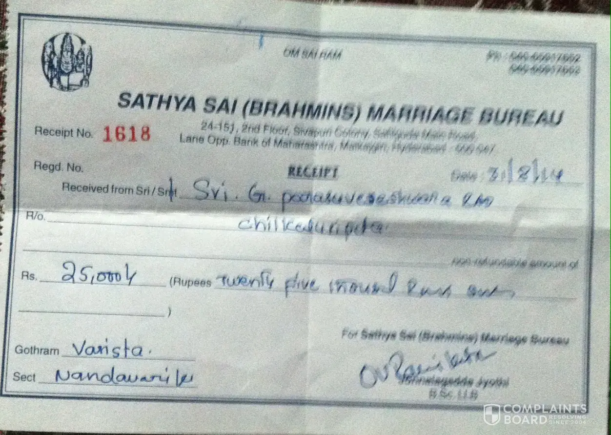 I had registered this bureau for instant marriage membership for my brother which is valid for 100days and paid rs.25, 000/- as a membership fee. Till today no communications from their end and every time send an sms for refund of my money that too after too many follow ups. But no response. And i did not receive any support till today. Yesterday (06/04/2015) i spoke to the concerned person regarding refund of money simply he says no refund as per our policy. The member ship charge is rs 25, 000/- i have asked for refund of my money as they did not provide the support( as per their claim). They are not ready to refund the money and they are showing the audacity. I want to sue jyothi matrimony for their wrong claim to me for the support and showing audacity and not paying my money back. I request your team to help us highlighting this complaint.