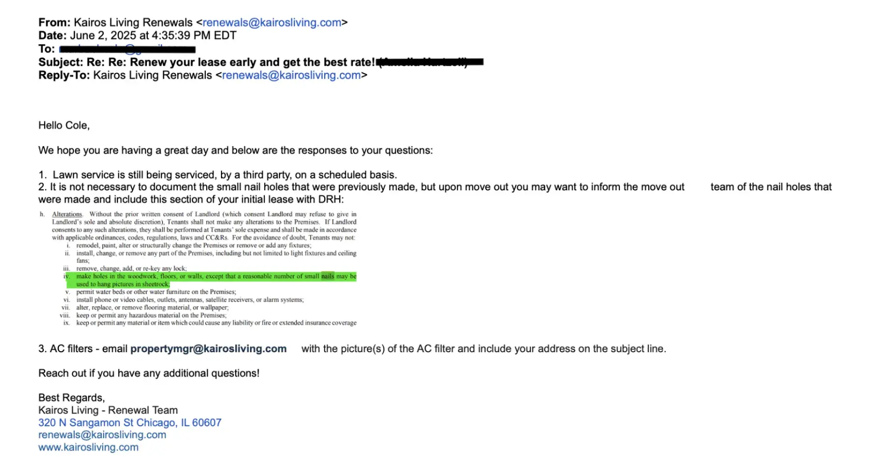Kairos bought our property and I knew right away I wasn't going to sign a new lease with them