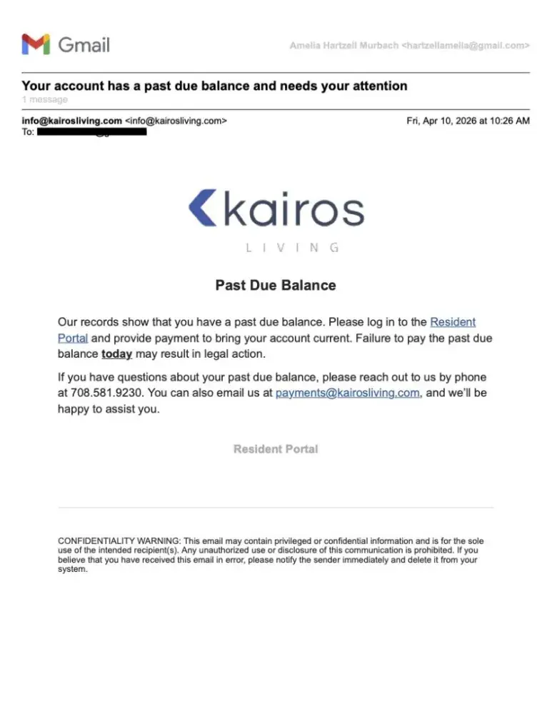 Now this month we have an issue with the utility company, which Kairos uses for water services as per the lease agreement that states the water bill must remain in their name. The utility company is trying to charge us for an electric bill, and their response is to direct us back to Kairos. I've reached out to Kairos and provided proof of residency with the start date of my service, but it's not sufficient for the utility company, so I've had to contact them multiple times in a short span to coordinate with Kairos. Kairos has become non-responsive.
