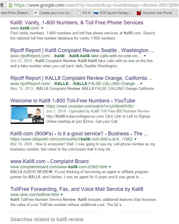 Kall8 suggestion that would overwhelmingly cease these complaints. What Kall8 needs to do is once a new customer signs on allow for 14-25 days of their number being in service. Any odd calls accounted for, where if there are excessive false calls the client has option for new number, or retain same number as the odd andor unwanted calls are flushed out as the number remains in service. Simple and everyone wins. It may be a little work for the new owner to keep track for a few months but one thing for sure is in that the problem you have with new 800 service is no different than new cell phone, or new landline number, or when you move to new area-code location and obtain unwanted calls. Someone else has owned the number at some point you are going to get a call. When was the last time you moved and the mail came for the other resident that lived there? Get a grip---stop ###ing and solve the challenge. I believe Kall8 be more than willing work with REASONABLE CUSTOMERS.