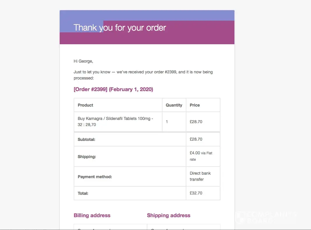 Read full complaint and 7 commentsOverview of Kamagrauk.com complaint handling