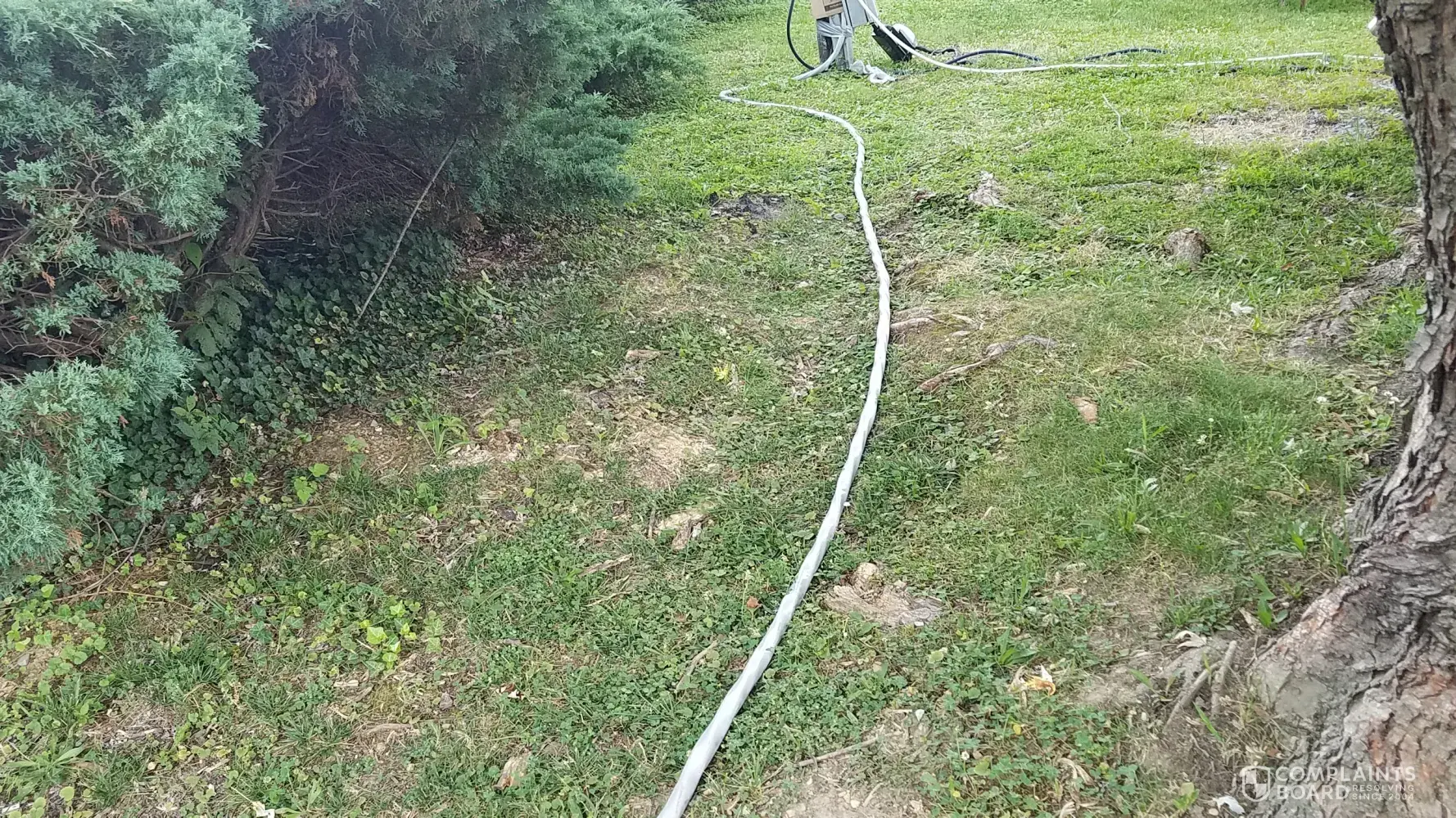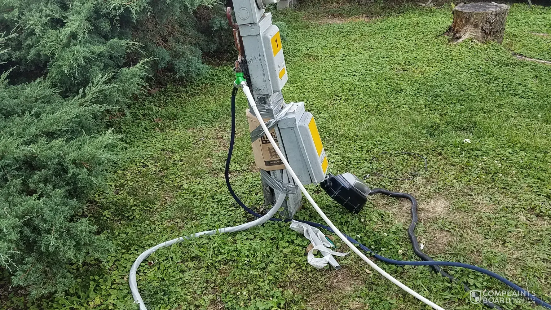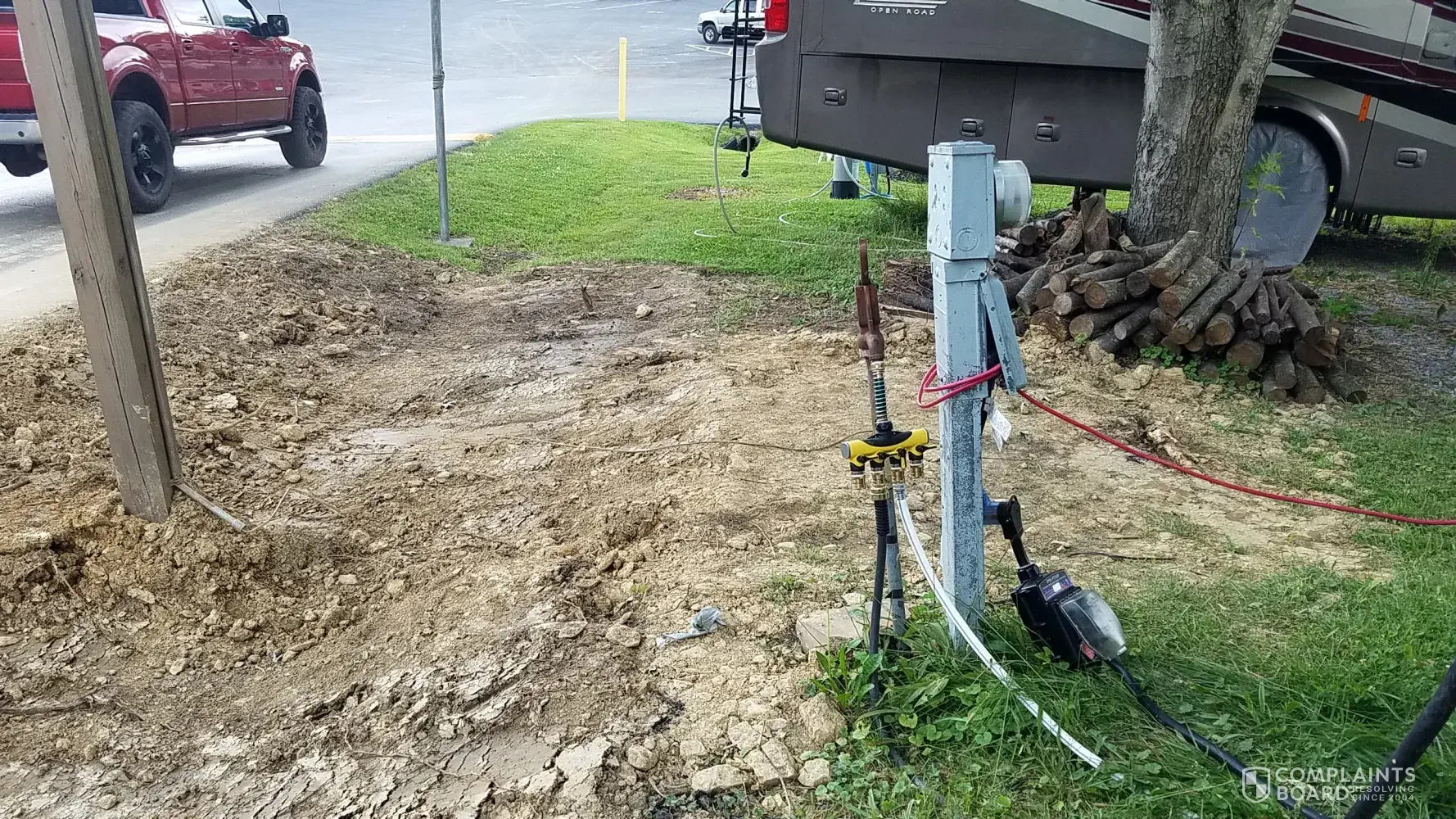 On Tuesday, July 2nd, 2019, at approximately 1:00 - 1:30pm, my wife and I arrived back at our 5th wheel where we have been staying since mid April while working as Insurance Adjusters in the area. There were two men using a backhoe digging a trench directly behind the pedestals on our row of rvs.