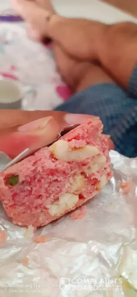Product and it's hygiene :dry fruit burfi had an hair inside the sweet