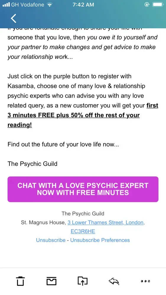 Kasamba Psycics does lot of damage to people's subconscious with those endless adds on youtube. As for example, the one ‘i caught my boyfriend cheating on me', literally conditions ones brain into such or similar happenings, with constant suggestion and imprint! Everyone who knows about the power of words knows what Im talking about. Please stop with those type of adds if you wish to really help people, and focus on providing helpful, positive and informative content instead. Thanks!
