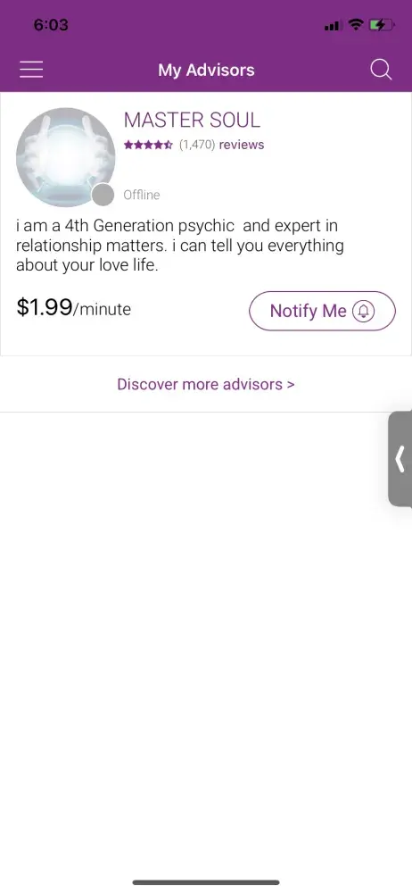 1. Yesterday when I joined I purchased services with an advisor by the name of Golden Eye, who I chatted with who never responded. I was refunded for these services