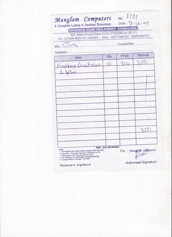 I have purchased from Shweta Computers &peripherals, Parklane, Secunderabad 500003
